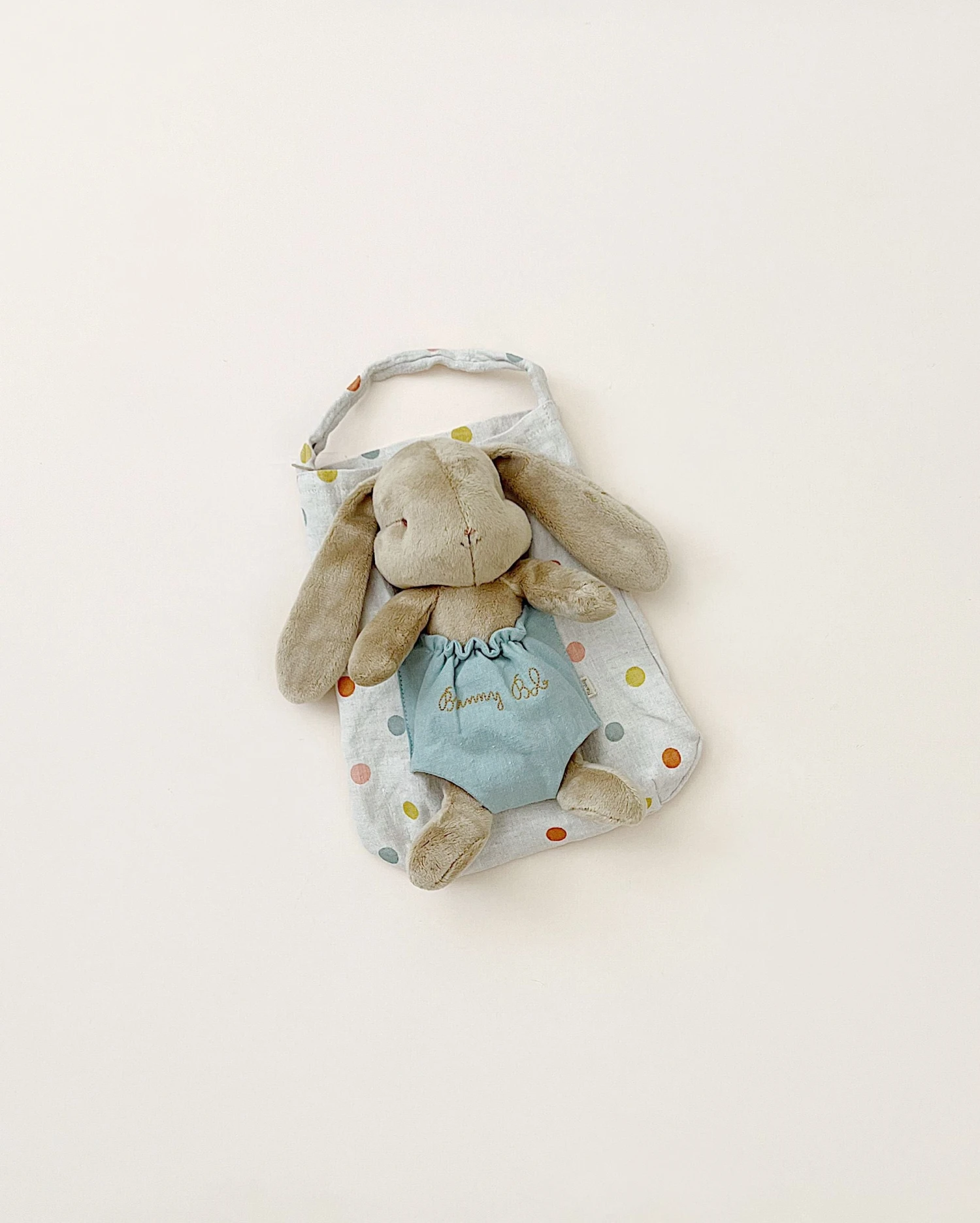 Bunny Bob is a must-have for all small cuddlers. Their plush design is so soft, and they fit perfectly in your arms. Bunny Holly comes with a sweet polka dot bag with a pocket on it, so you can carry your friend along.