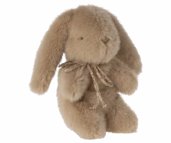 A soft bunny with a lovely bow around the neck. It has magnets in the hands so that it can easily hold small metal accessories.