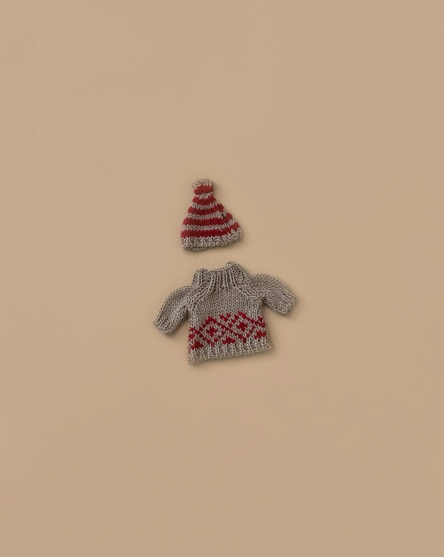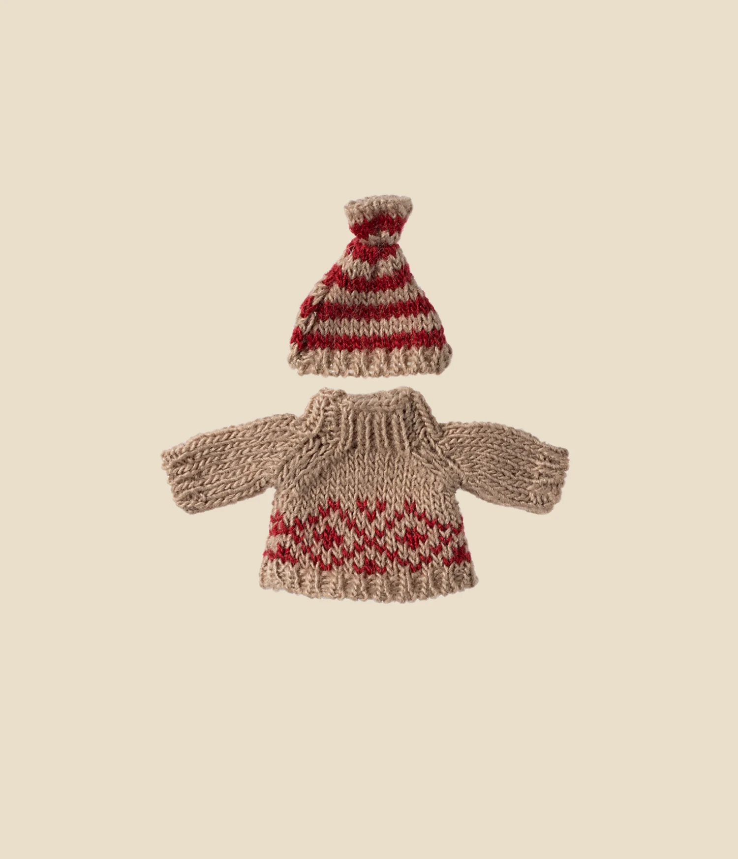 A soft knitted sweater and hat for the cold wintertime. It will for sure keep your little friends warm. The sets fits the mice in size Big sister/ Big brother