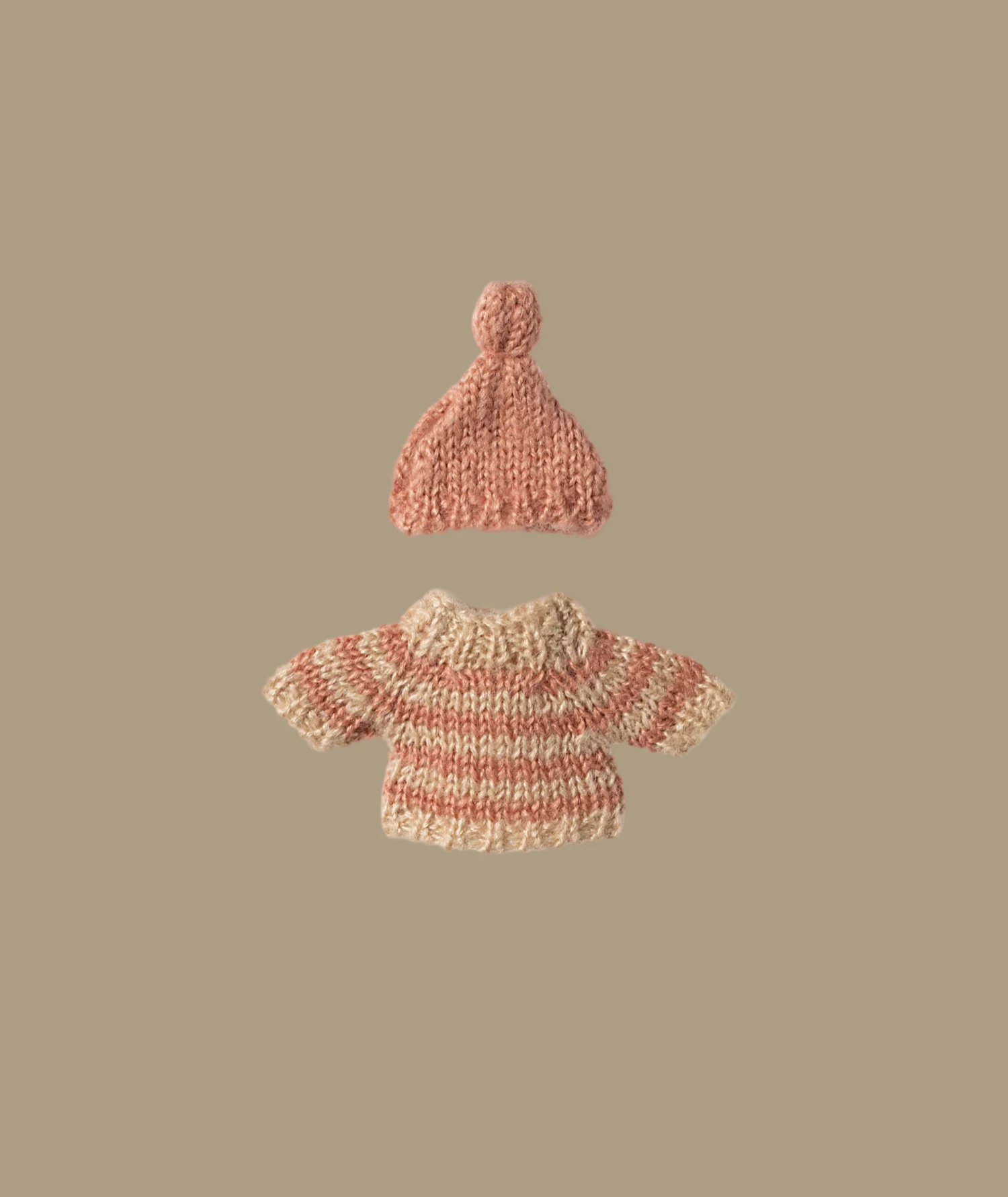 A soft knitted sweater and hat for the cold wintertime. It will for sure keep your little friends warm. The sets fits the mice in size Big sister/ Big brother