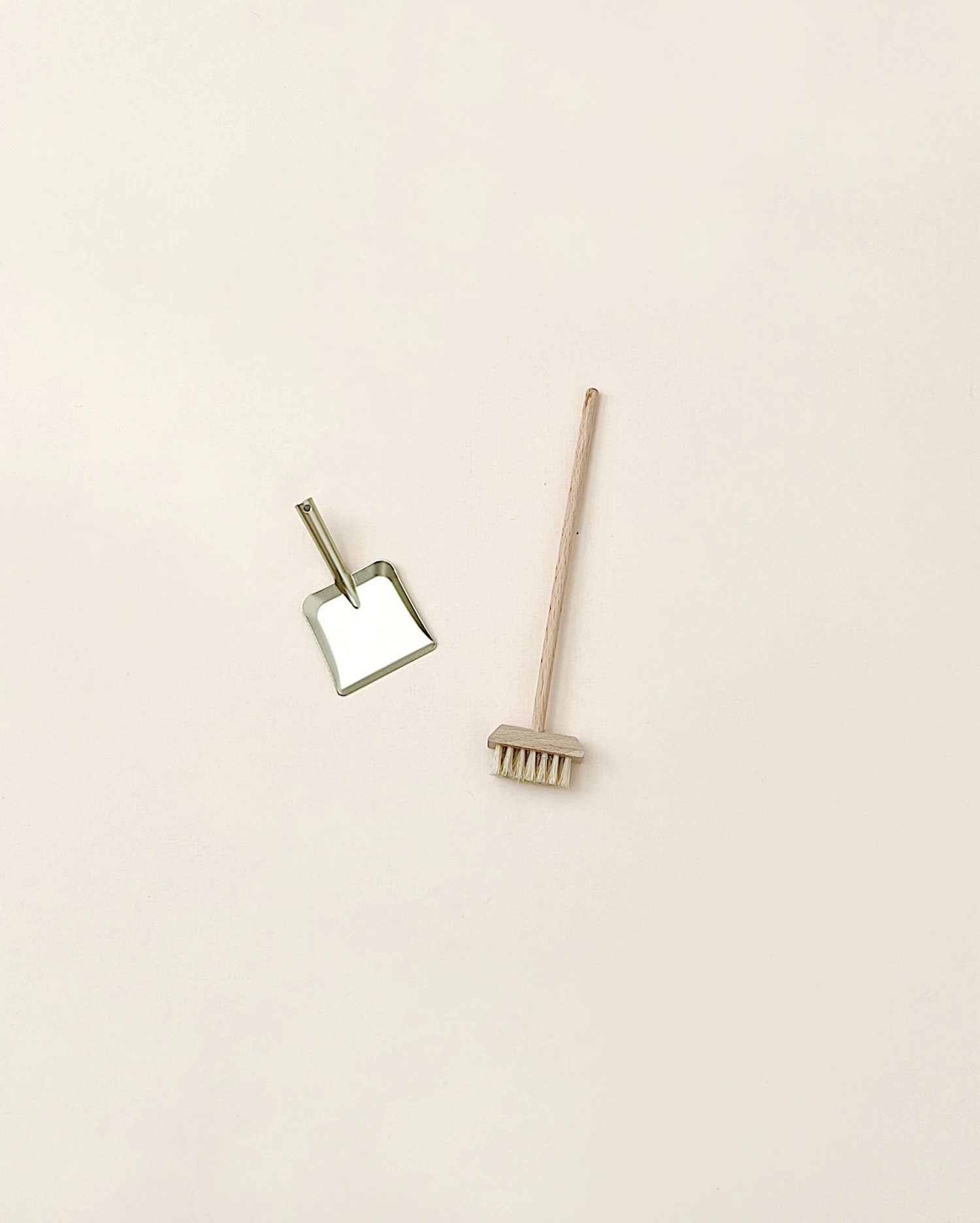 With this Miniature broom set you are ready to clean up. The dust pan comes in a beautiful warm silver color together with the wooden broom.