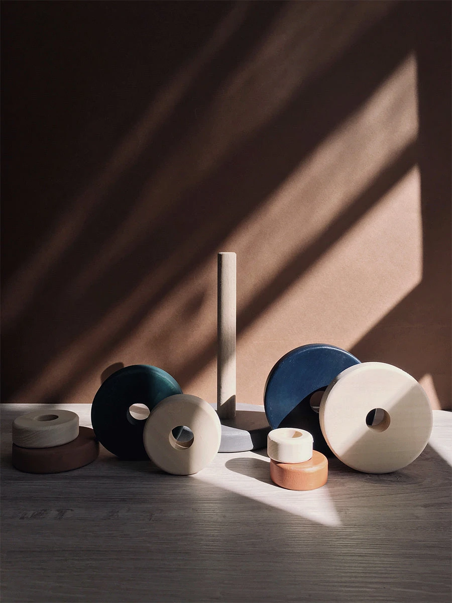 Handmade by Sabo Concept in Ukraine and painted with non-toxic, water-based paint. This stacking toy is great for hand-eye coordination.